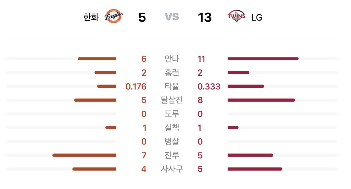 | 한화 이글스 | 5 | 8 | 2 | 1 |